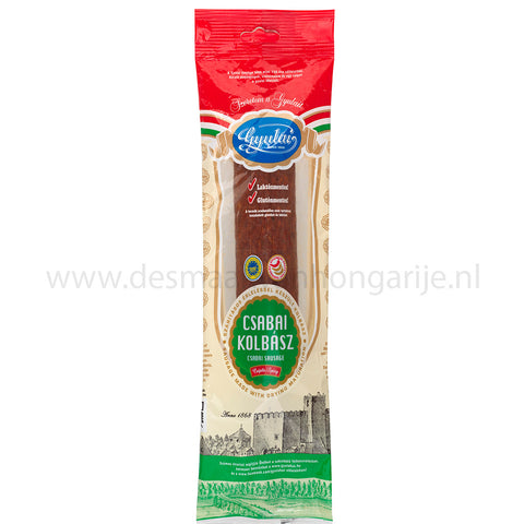 The Csabai kolbász  is a dried spicy sausage with a unique paprika taste. You can also taste the caraway seed that is used. Csabai kolbász has its origins in the town of Békéscsaba. But this sausage can be made in Gyula as well as in Békéscsaba.